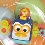 - Rezolvarea Problemelor: Unele părți ale jucăriei necesită ca micuțul să rezolve mici „probleme” pentru a activa o funcție, cum ar fi apăsarea unui buton pentru a deschide o clapetă sau tragerea unei chei pentru a elibera un alt mecanism.
