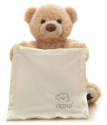 Se ascunde dupa paturica lui pentru a se descoperi din nou,spre deliciul micutului omulet,in timp ce recita una din frazele incluse.