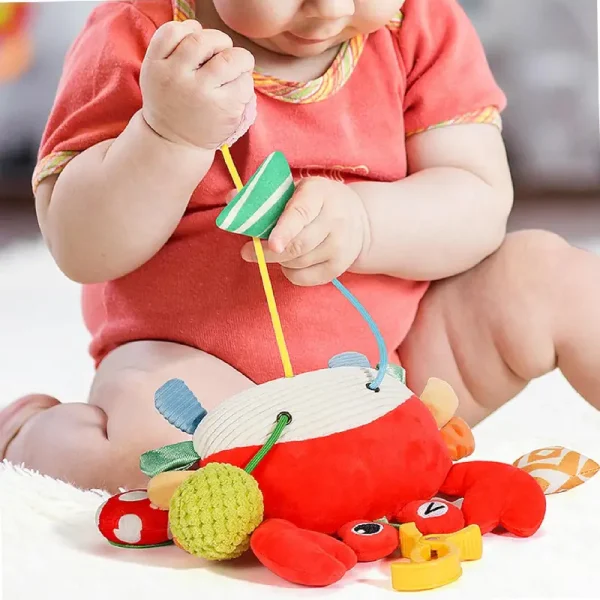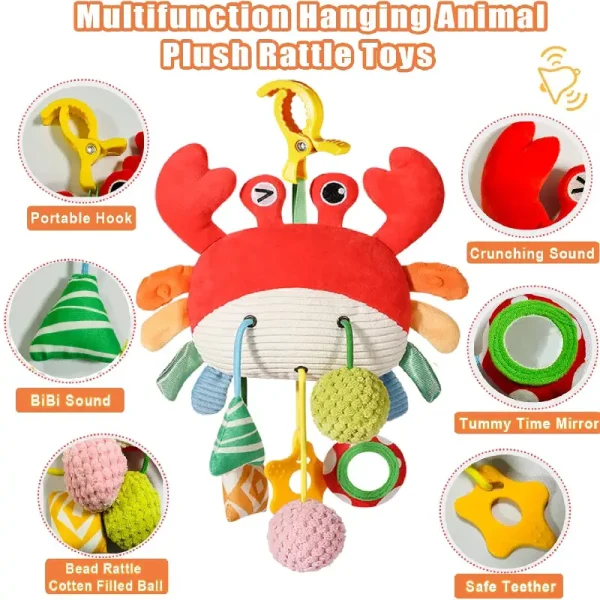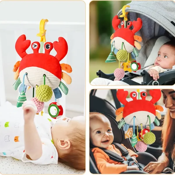Această adorabilă jucărie senzorială tip crab este companionul ideal pentru fiecare ieșire cu bebelușul tău.