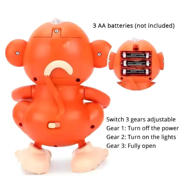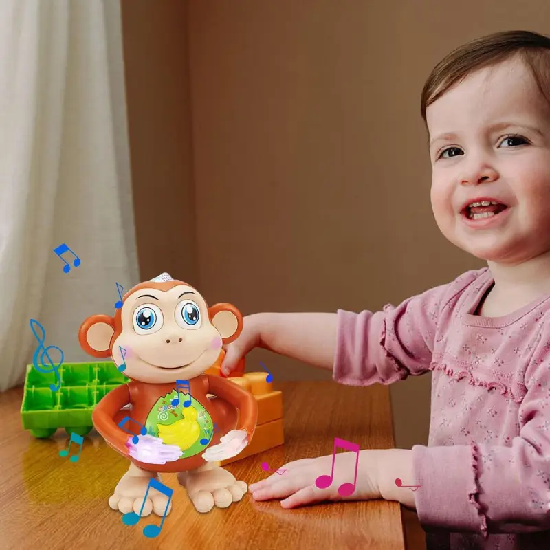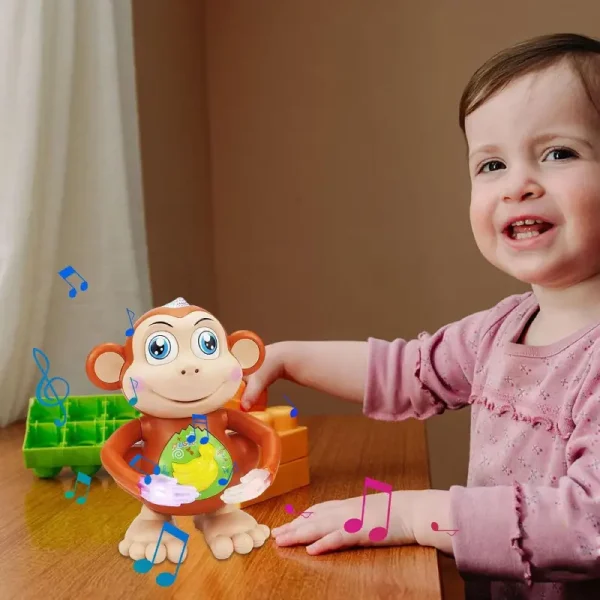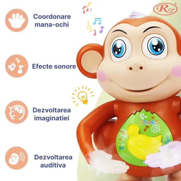 Cu sunete plăcute și lumini jucăușe, maimuțica dansează și cântă, transformând fiecare moment într-o experiență de neuitat!