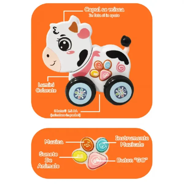 Jucarie Interactiva Muzicala cu Lumini Vacuta ofera copiilor o experiență de joc interactivă și distractivă.