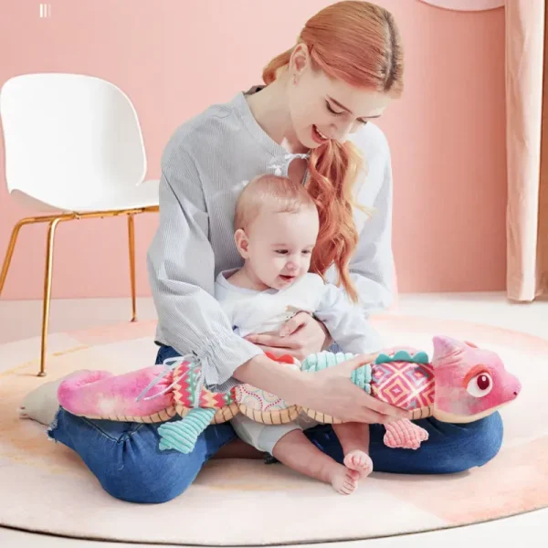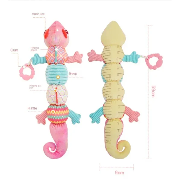 - Aspect atrăgător: Cameleonul are un design plăcut, colorat și atrăgător pentru a captiva atenția bebelușului.