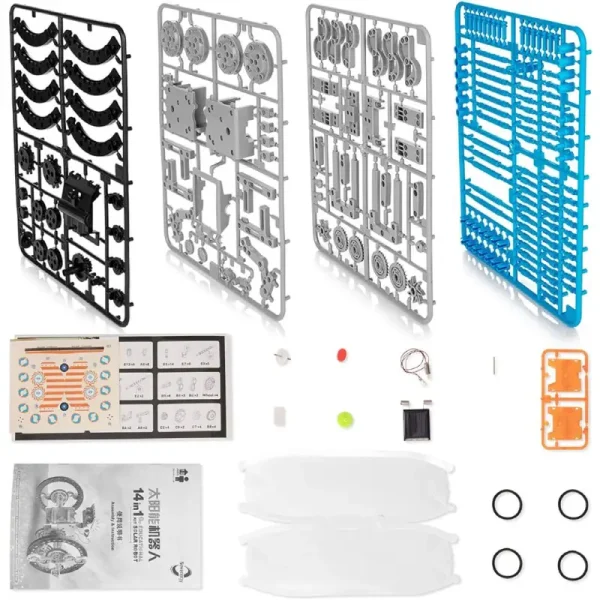 Este compus din inclusiv piese mobile și de conectare, cum ar fi roți dințate, plăci, anvelope,etci. Copiii le pot dezasambla cu ușurință după construirea fiecărui robot.