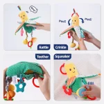 Bebelușii pot să apuce, să strângă și să exploreze jucăria, ceea ce contribuie la dezvoltarea abilităților motorii fine.