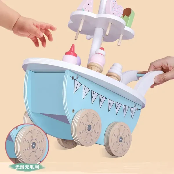Jucarie Lemn Carucior Mobil cu Inghetata si Accesorii – Joc de Rol și Distracție Creativă