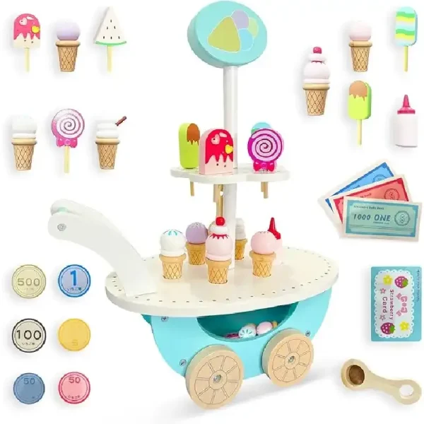 - Stimularea Imaginației: Copiii își pot crea propriile scenarii de vânzare și servire a înghețatei.