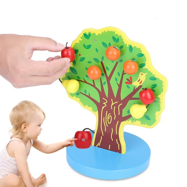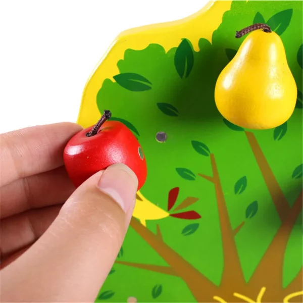 Aceasta jucarie il va tine pe copil mult timp ocupat. Fructele se prind de copac prin cu ajutorul magnetului. Ambele fete ale copacului prezinta 8 puncte magnetice unde se pot prinde fructele. Fructele pot fi prinse in moduri diferite,astfel incat la final,copacul nu va arata de fiecare data la fel. Totul depinde de creativitatea si imaginatia celor mici.