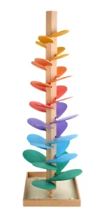 Usor de folosit,copiii trebuie sa ataseze frunzele in locasurile speciale,apoi vor da drumul bilelor pr rand,din varful copacului.