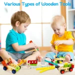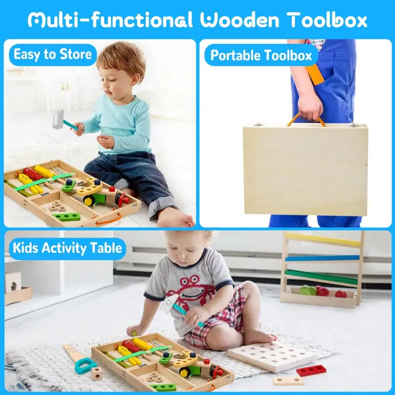 Jucarie Lemn Montessori DIY Trusa Scule 34Piese are tot ceea ce are nevoie un mester adevarat!