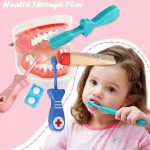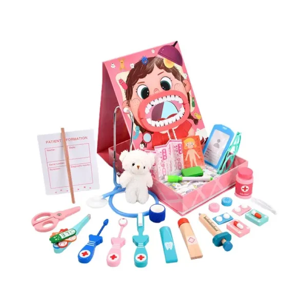 - include o varietate de instrumente medicale de jucărie, precum oglinda stomatologică, sonde, pensete și chiar o jucărie de perie de dinți și pastă de dinți