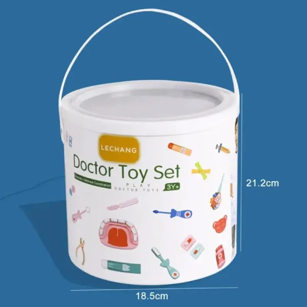 - Set complet: Jucăria include o trusă de instrumente și accesorii care imită echipamentul unui medic stomatolog, cum ar fi : stetoscop, seringa, termometru,cleste, pansamente, etc.