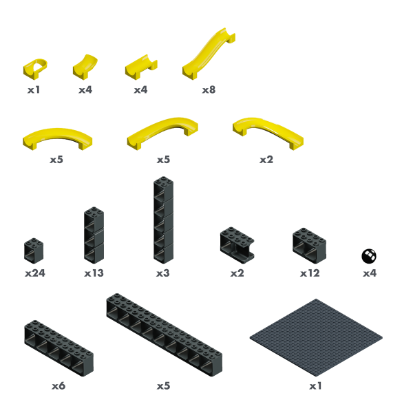 Setul de 99 de piese contine toate componentele de care aveti nevoie pentru a construi un traseu de marble run. Cele 29 de elemente de rulare includ alunecari si curbe abrupte pentru a crea viteza necesara, precum si o multime de elemente de baza pentru a construi o constructie interesanta. Cele 63 de elemente de constructie si doua adaptoare de tunel ofera stabilitate constructiei, iar placa de baza patrata va permite sa construiti la noi inaltimi indraznete. In plus, setul contine patru bile din otel de inalta calitate pentru o distractie fara sfarsit de alergare. Marble Run Set M include un manual cu instructiuni bine ilustrate pas cu pas.