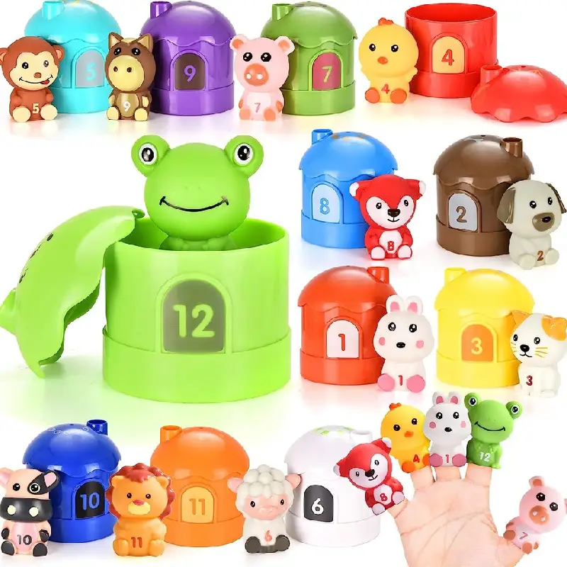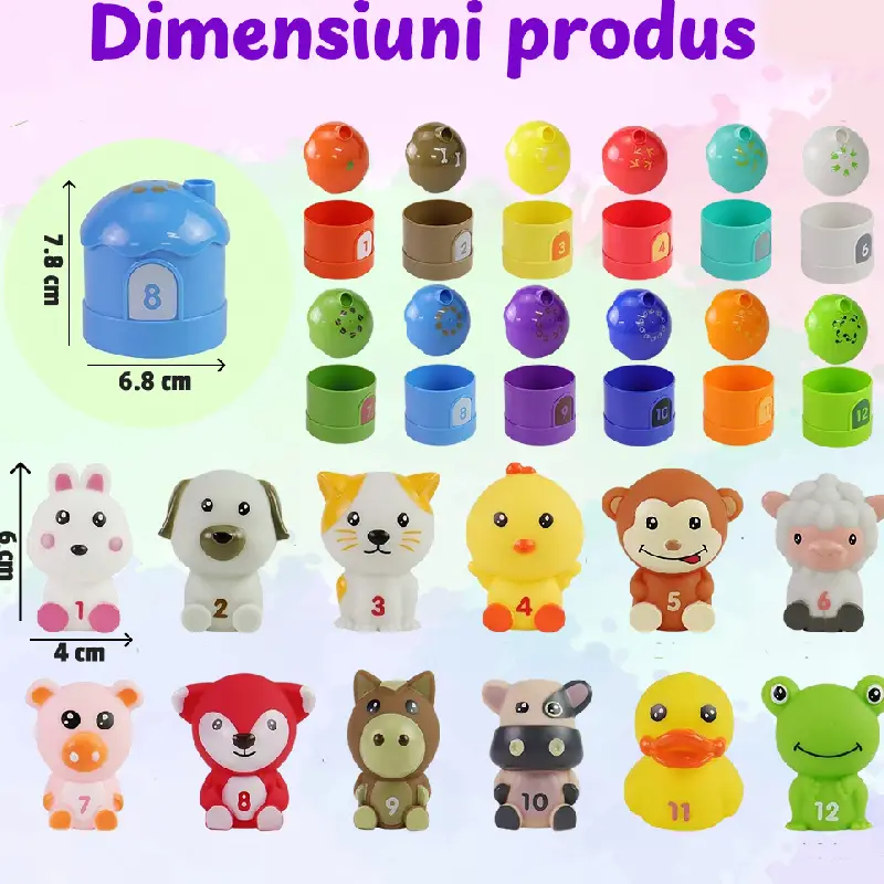 Jucarie Montessori de Asociere si Sortare cu Marionete – Animăluțe Colorate și Căsuțe Numerotate | Învață cu Distracție | CaraToys