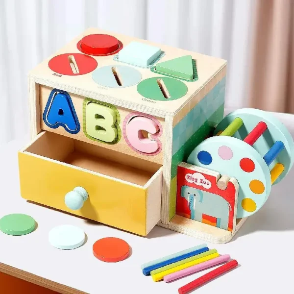 Jucarie Montessori din Lemn 8 în 1 Caratoys – Sortare Forme, Litere ABC, Culori și Numere