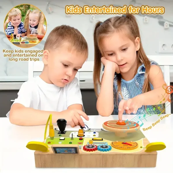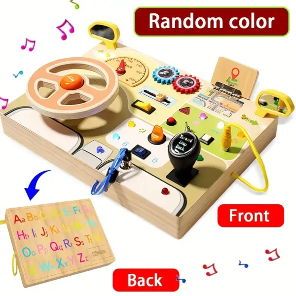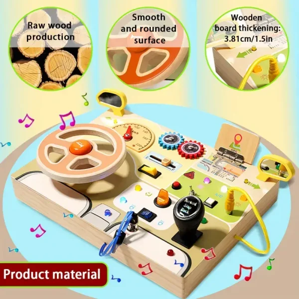 Jucărie Montessori Bord de Conducere din Lemn – Busy Board Interactiv pentru Dezvoltarea Copilului!