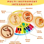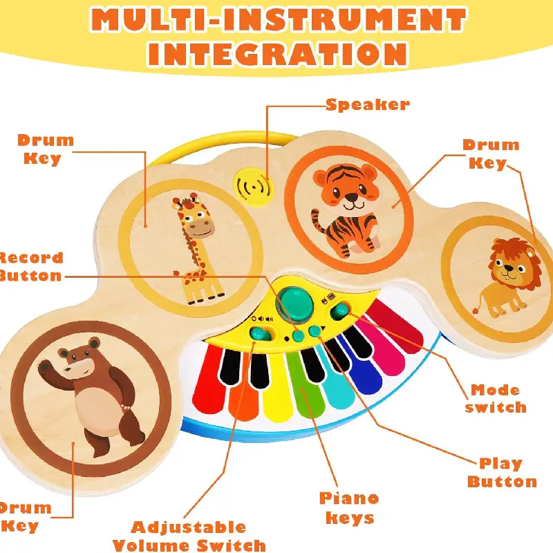 - Dezvoltarea abilităților motorii fine: Apăsarea tastelor de pian și bătăile pe toba jucăriei necesită mișcări fine ale degetelor și mâinilor, contribuind la dezvoltarea abilităților motorii fine.