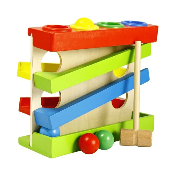 Jucarie Montessori Pista Bile si Ciocanel Lemn
