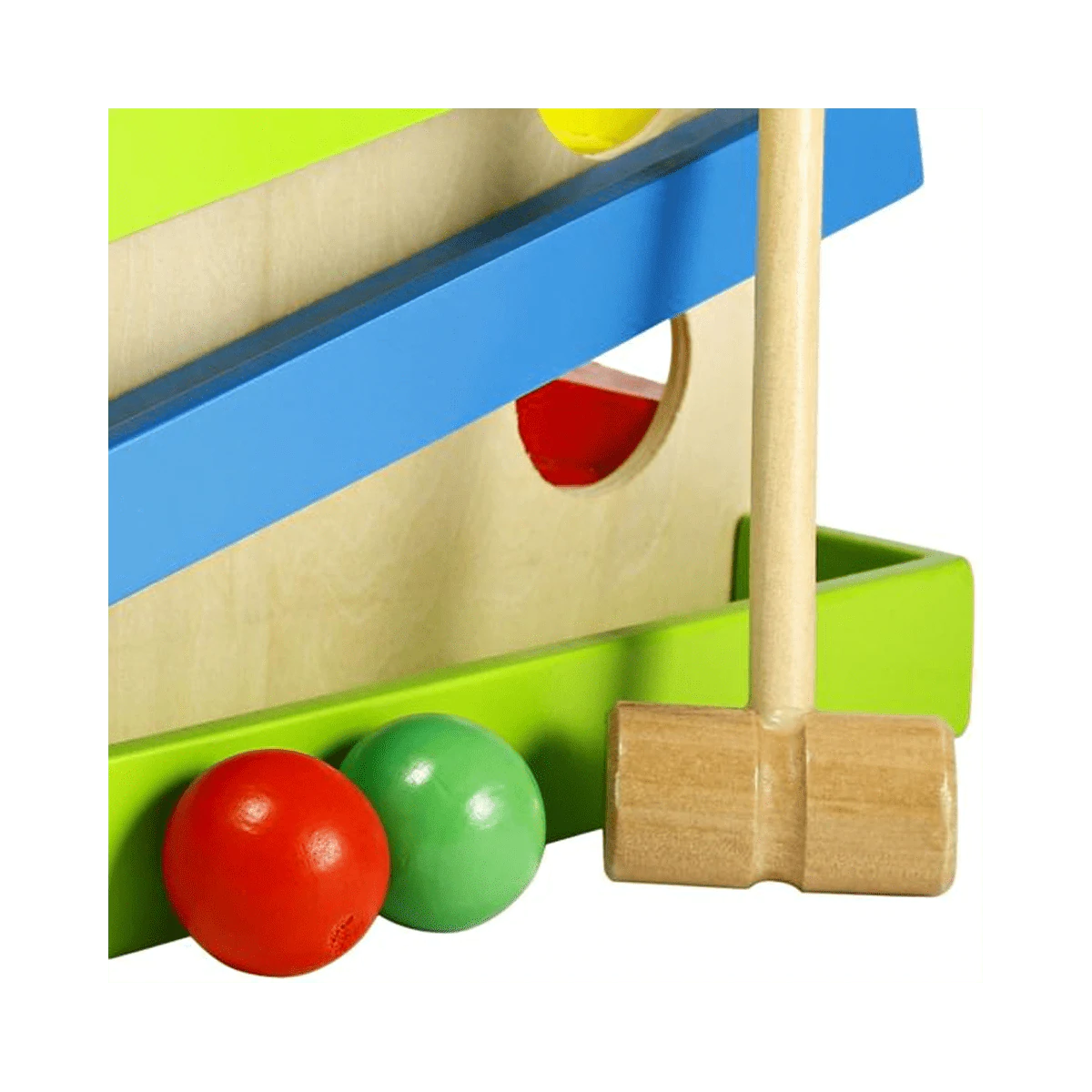 Jucarie Montessori Pista Bile si Ciocanel Lemn caracteristici :