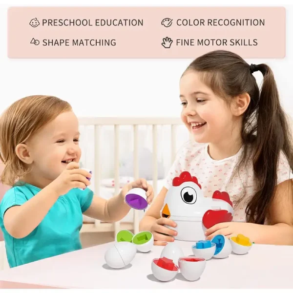 Stimulează creativitatea și abilitățile motorii fine ale copilului tău cu Jucarie Montessori Potriveste Oua cu Forme Geometrice!