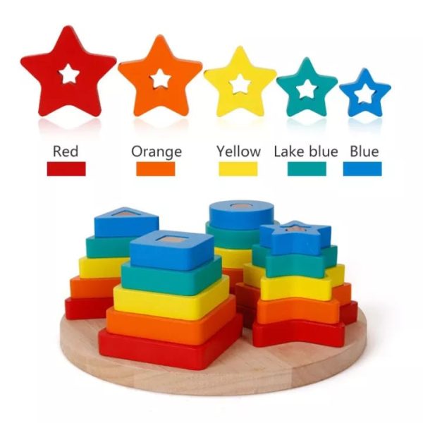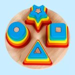 Jucarie Montessori Sortator Forme Geometrice Curcubeu din lemn,in culori vesele,contine 4 coloane cu diferite forme geometrice,dispuse circular.