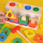 Sortarea formelor – copilul învață formele, culorile și potrivirea corectă a pieselor.