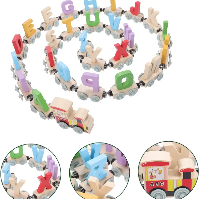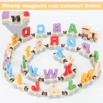 Îmbunătățește abilitățile lingvistice și coordonarea mână-ochi a copilului tău cu Jucăria Montessori Trenuleț Magnetic Alfabet 26 Litere!