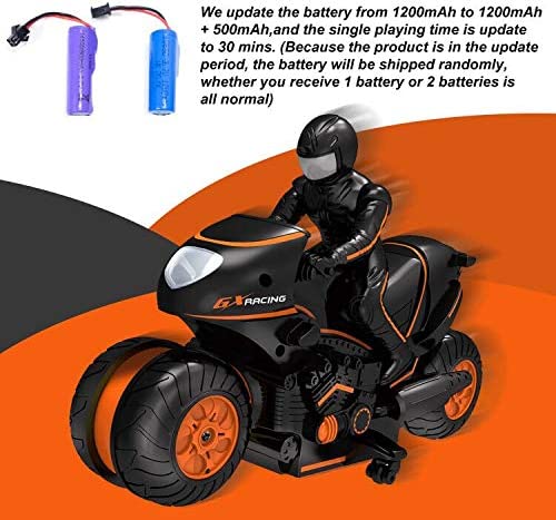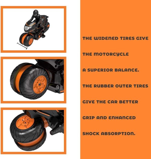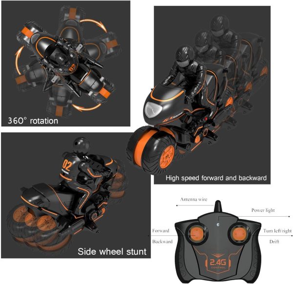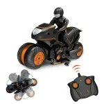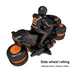 Jucarie Motocicleta cu Telecomanda Rotatie 360 Grade Portocaliu este usor de manevrat prin telecomanda cu radio-frecventa de 2,4GHz.