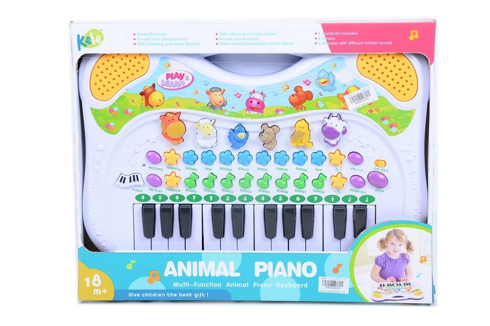 Prin apasrea tastelor se pot auzi sunete instrumentale cat si sunete ale diferitor animale.Un cadou minunat care le va face ,cu siguranta,ochii sa straluceasca de fericire!