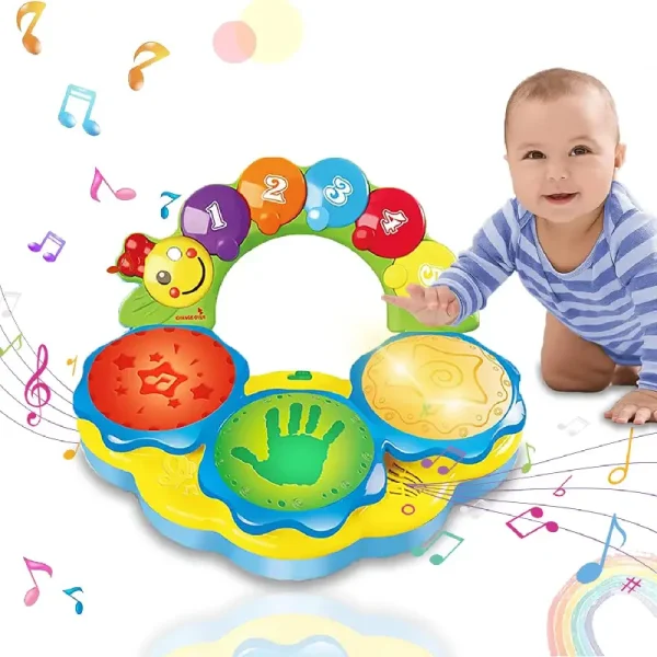 Adaugă o notă muzicală și vizuală plină de energie în lumea copilului tău cu Jucăria Muzicală Interactivă – Toba cu Lumini.