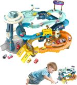 Conține o varietate de funcții și multe accesorii interesante, set de pistă pentru curse pentru copii poate fi așezat pe o masă sau pe podea si este ușor de construit.