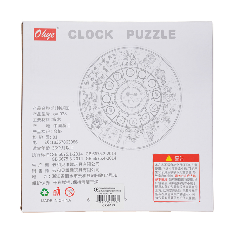 Jucarie Puzzle din Lemn Ceas cu Cifre si Animale. Aceasta jucarie Montessori de tip puzzle este confectionata din lemn masiv si contine 25 de piese puzzle. Jocul este distractiv de asamblat, ideal pentru invatarea numerelor. Piesele trebuie asociate intre ele, cu ajutorul numerelor, astfel copii isi dezvolta gandirea logica, invatand lucruri noi in timp ce se distreaza. Jocul ajuta la imbunatatirea mana-ochi, logica si abilitatea cognitiva. Dimenisuni: 22,5x 22,5 cm