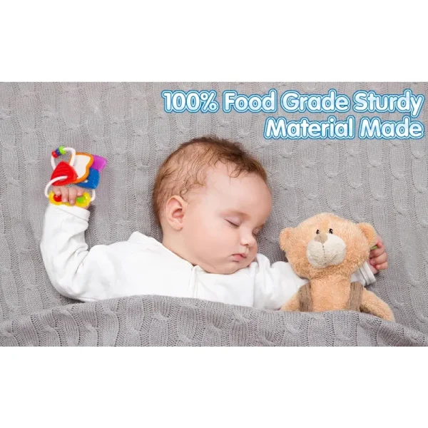 - Material sigur pentru dentiție: Aceste jucării sunt fabricate din materiale sigure pentru a fi mușcate și manipulate de către bebeluși.