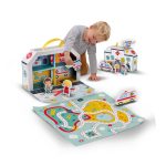 Aceasta cutie frumoasa de joaca de spital, care include un covoras de joaca si patru figurine din lemn, ofera ore intregi de distractie! Veti alerga cu ambulanta pe strazi sau ar trebui elicopterul sa iasa in aer pentru o salvare rapida? Esti deja medic. Ce echipa eroica! Datorita manerului la indemana si inchiderii magnetice, iti poti lua husa de joaca oriunde te duci. Strazile de pe carcasa de joaca si saltele de joaca se potrivesc frumos si pot fi extinse cu mai multe seturi. In acest fel, iti poti face lumea jocului si mai mare!