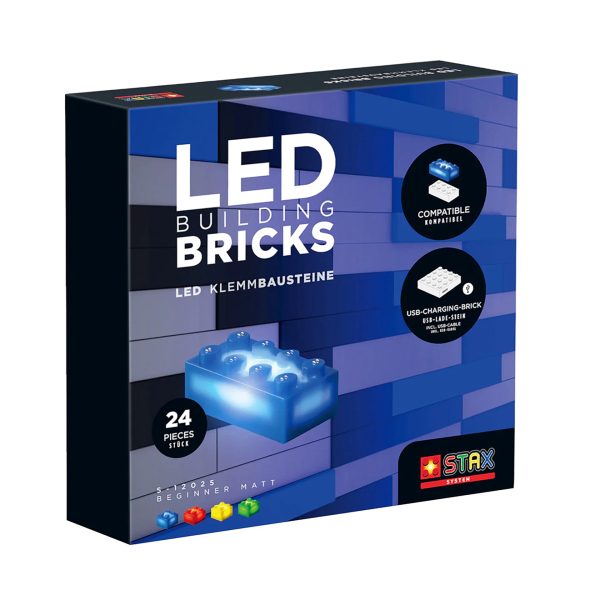 Continut: 24 blocuri de constructie STAX (8x(2×4), 8x(2×2), 8x(1×2)), 1 piesa de alimentare mobila reincarcabila si cablu USB.