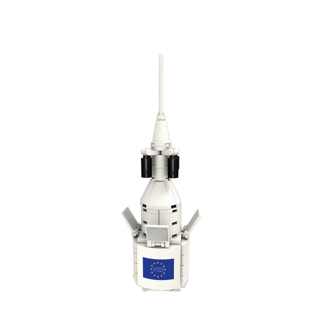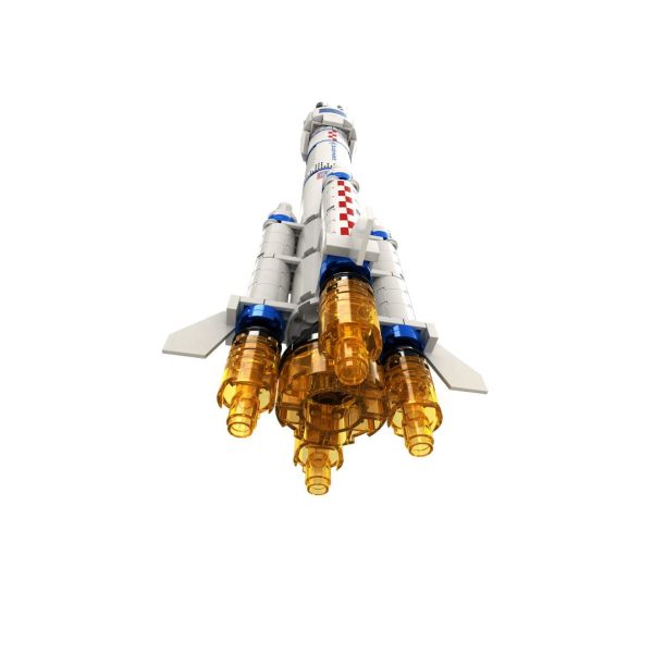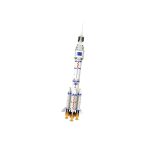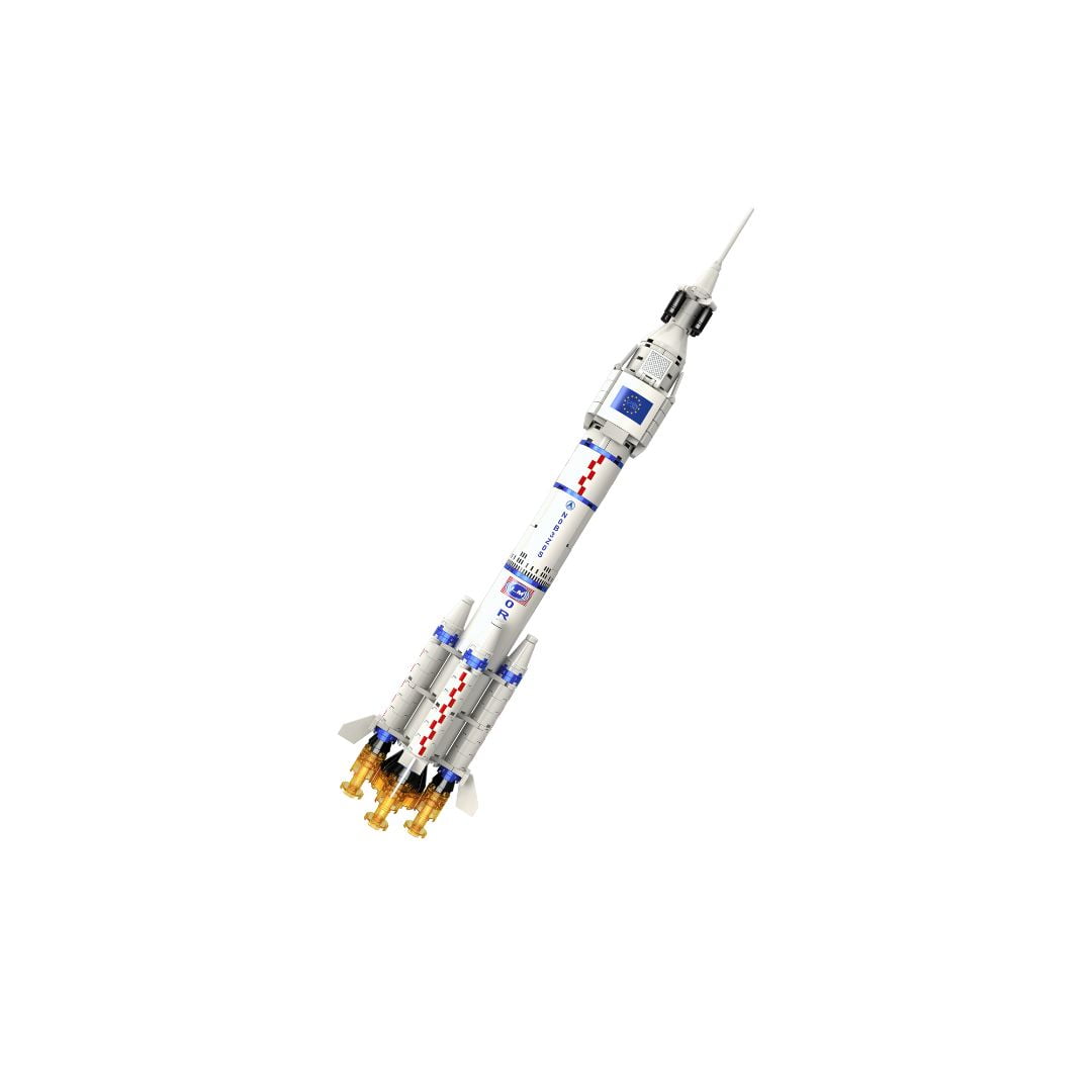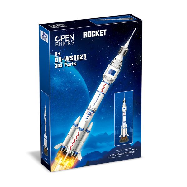 Set de constructie racheta, care contine 303 de piese compatibile cu marcile traditionale, autocolante si instructiuni de constructie. Textul autocolantului de pe racheta contine un mesaj secret. Vine cu o piesa usoara impresionanta care simuleaza motoarele de racheta pornite.