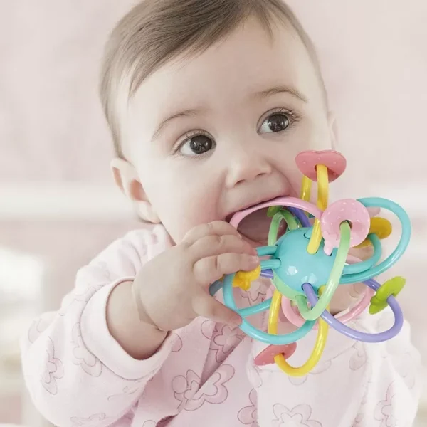 Mingiuta cu inele din silicon si zornaitoare, in culori calde, placute, de calitate!