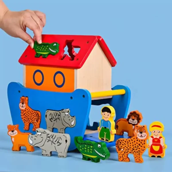 Bine ai venit la aventura educațională și distractivă cu jucăria noastră sortator de forme Arca lui Noe!