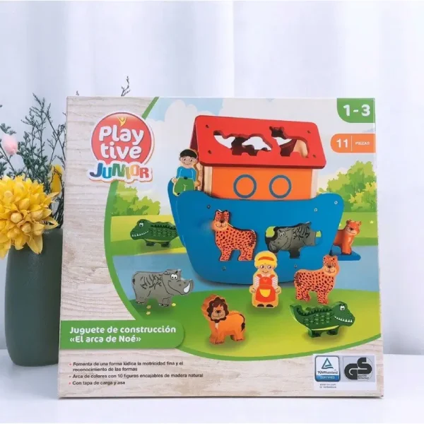 Jucarie Sortator Forme Arca lui Noe 11 Piese este educativă și distractivă, concepută pentru a ajuta copiii să învețe despre forme, culori și să dezvolte abilitățile motorii.