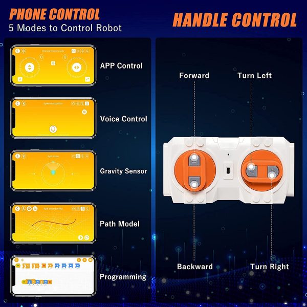 Caracteristici Jucarie STEM Constructie Robotel Telecomanda si Control Telefon :