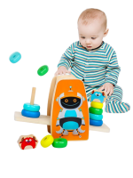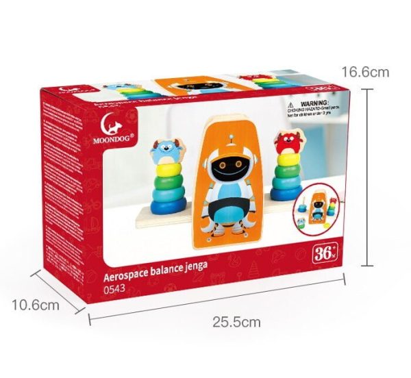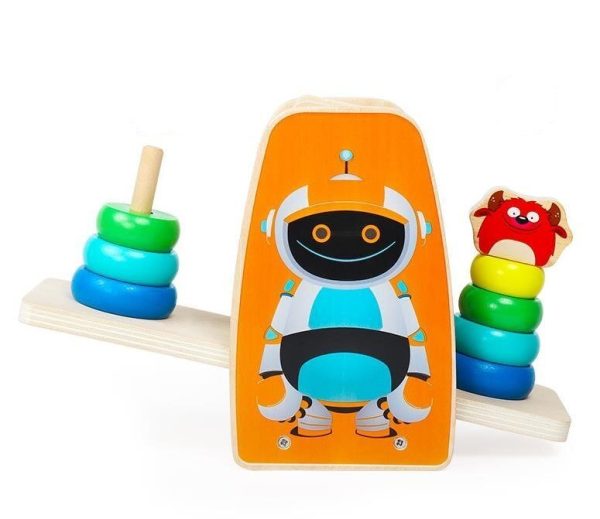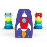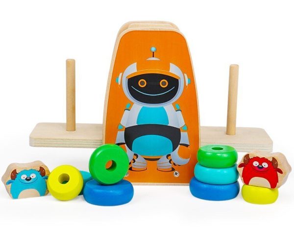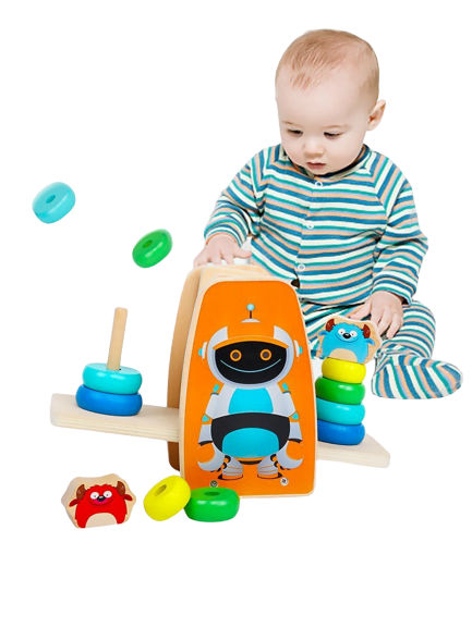 Jucarie Stivuit Balanta Nava Spatiala si Robotel Lemn ajuta la dezvoltarea intelectuala,imbunatatirea gandirii logice si potrivirea formelor.