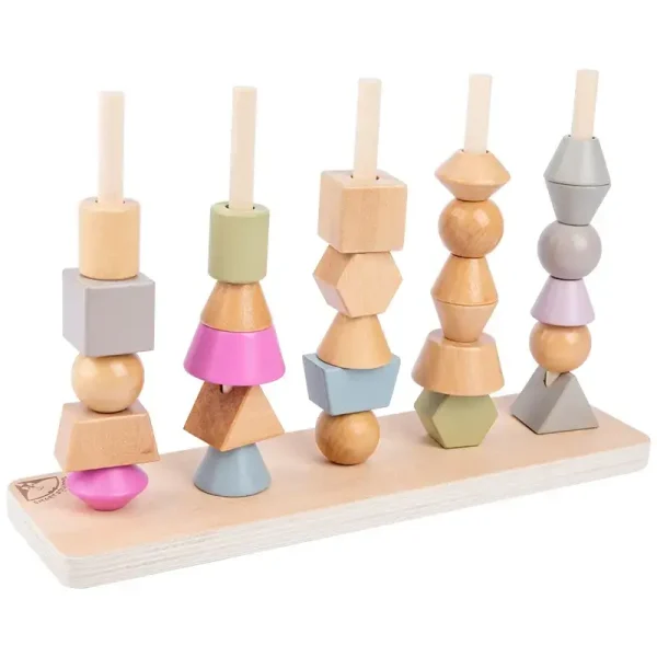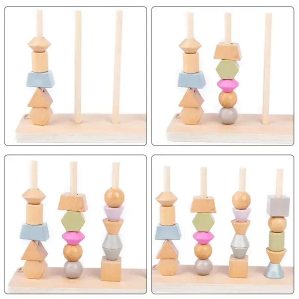 Fiecare formă geometrică poate fi stivuită și sortată în diverse moduri, oferind copiilor posibilitatea de a experimenta și dezvolta abilități motorii fine. Procesul de sortare și asociere a formelor contribuie la dezvoltarea inteligenței spațiale.