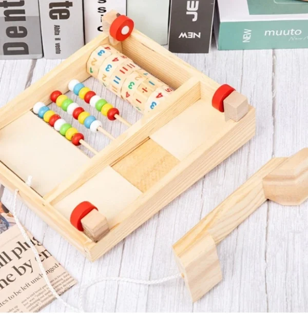 Jucarie Telefon Lemn Multifunctional cu Numaratoare are rol educativ si dezvolta atentia,gandirea logica , motricitatea si primele notiuni despre cifre si numarat.