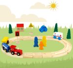 Trenulet puzzle cu semne de circulatie are elemente de peisagistica,frumos colorate si 33 de piese confectionate din lemn.