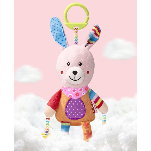 Jucarie Zornaitoare Iepuras pentru Dentitie Bebelusi este moale,placuta la atingere si fabricata din material textil conform normelor CE.