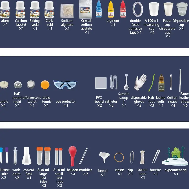 Setul conține eprubete, pipete, recipiente, substanțe de laborator și planșe pentru învățare vizuală – tot ce are nevoie un mic savant pentru a învăța prin joacă!