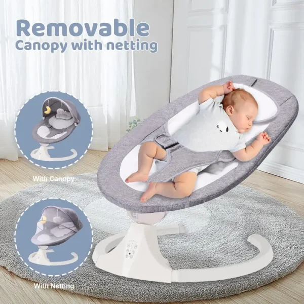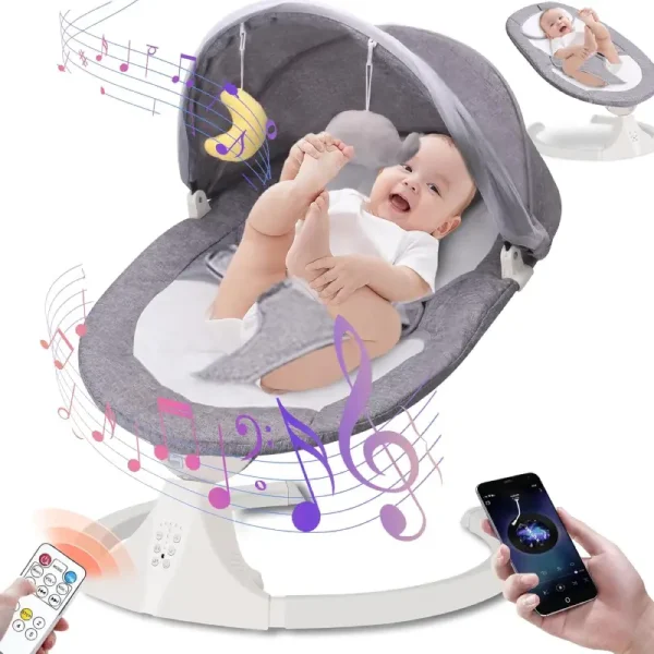 Leagăn Electric Smart pentru Bebeluși – Somn Liniștit, Distracție și Control la Distanță!