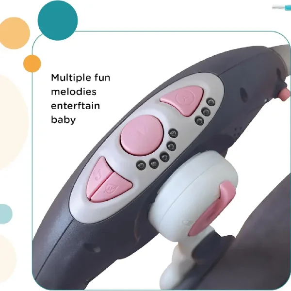 - Stimulare senzorială: Jucăriile suspendate și mișcarea contribuie la dezvoltarea vizuală și cognitivă a bebelușului, menținându-i atenția și interesul.