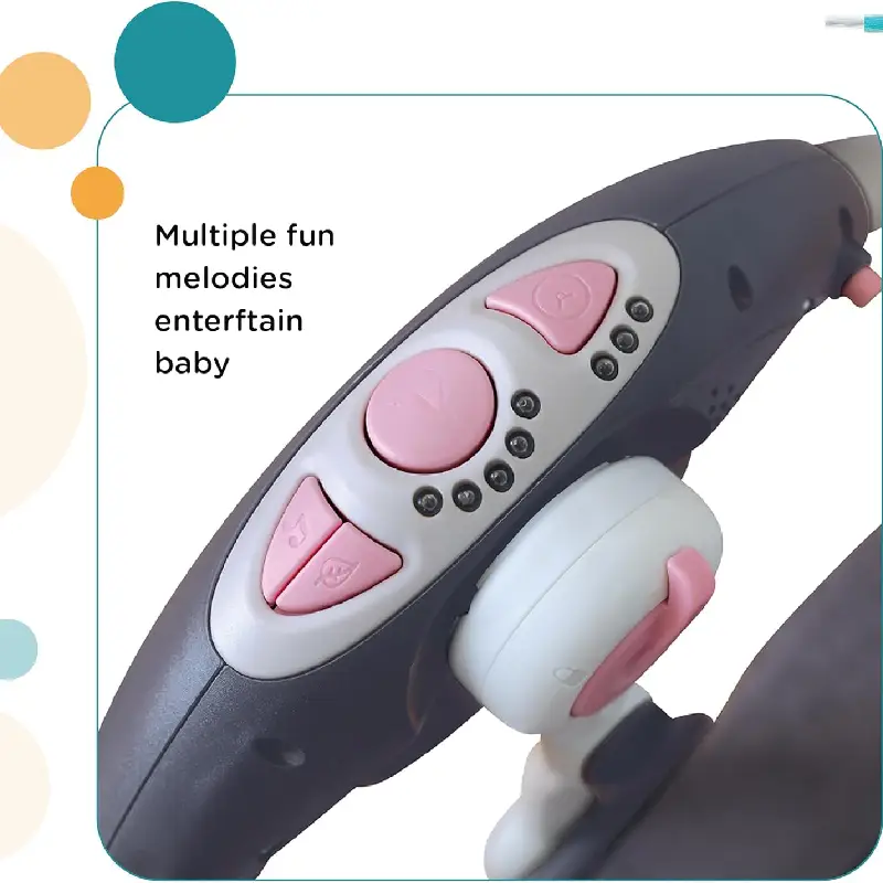 - Funcție de legănare blândă: Mișcarea de legănare este lină și constantă, ajutând la calmarea și relaxarea copilului, oferindu-i o stare de bine.
