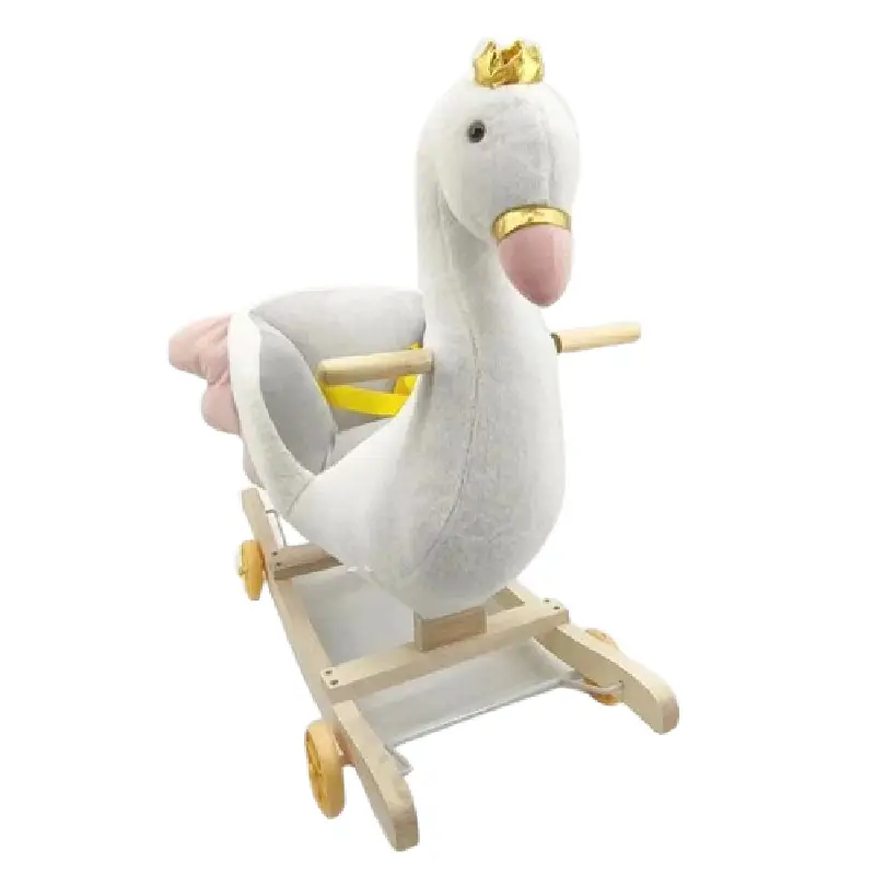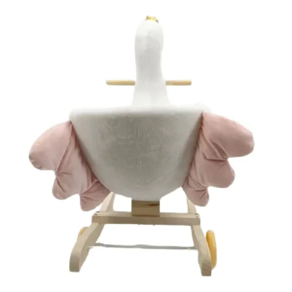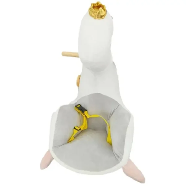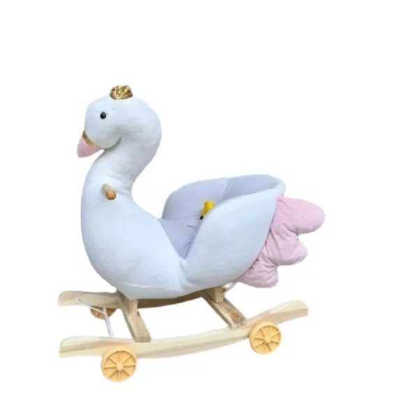 Lebada Balansoar Muzical Tip Sanie cu Spatar si Roti este o jucărie distractivă și educațională pentru copii mici.
