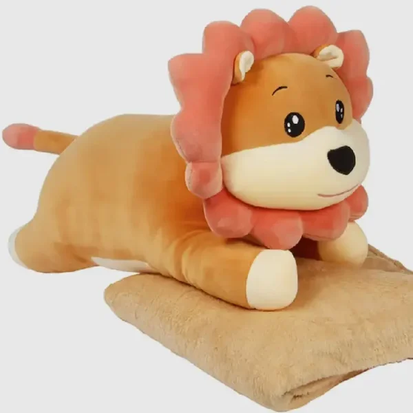 Leu Simpatic din Pluș cu Păturică Pufoasă Inclusa– Confort și Joacă într-un Singur Set
